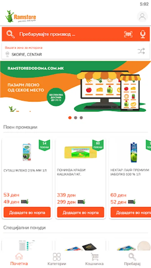 With Ramstore Online Market, you can have orders delivered either to your home or to your business. First of all, it is enough to choose the address where you want the order to be delivered and enter your username and password only once in Ramstore Online Market. You can change your delivery address at any time. We deliver your orders that you have created with the Ramstore Online Market application with our special refrigerated vehicles. What's more, you can choose not only the day you ordered, but also a different delivery day that suits you. Paying with Ramstore Online Market is both easy and secure. We are at your service with online and credit card payment options at the door. Ramstore Onlime Market is only in Macedonia and at your service.