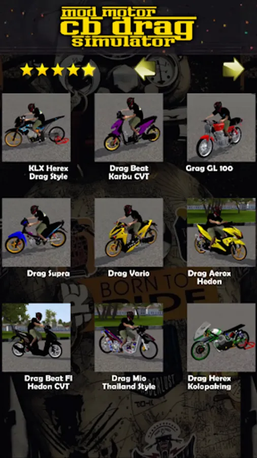 The facelift version of the mod drag bike simulator is a retro motorbike bus simulator bike mod app which is designed to be a motorcycle simulator mod with a classic style full bussid drag mod equipped with a cool drag livery display electronic ignition mod bussid drag 2023 digital electric instruments bussid drag racing simulator motorbike and suspension tuned thailand mod drag bike. The retro mod drag bike, the motor street race, has the title cafe racer drag mod, which is included in the new bussid vehicle mod category, has lots of skin bus simulator drag motorbikes that can be completed by downloading Basuri slowmo. The advantages of this CBR motorbike simulator bus mod are known as fuel-efficient rocking truck shaking vehicles, as well as flat drag simulator mods that are easy to drive to maneuver the original drag motorbike mods because the body is relatively light and there is also a bussid mod drag Thai version and there is also an Indian bike simulator mods. As you know, the bussid Indian mod livery has become a special concern, and also has the latest bussid mod map v3.8 which can adjust which path you want, for the Indian mod bus simulator it is also a special attraction.