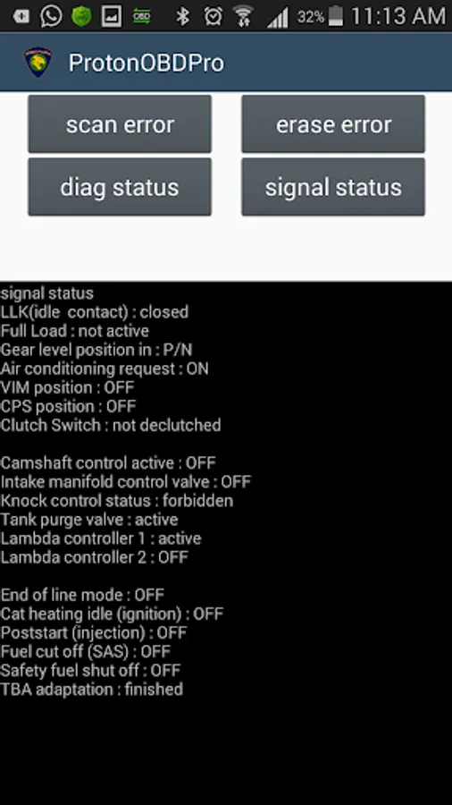 12. To scan error codes (or other features), tap on this plugin logo (PROTON OBD). Please make sure the connection to ECu is completed before scanning.