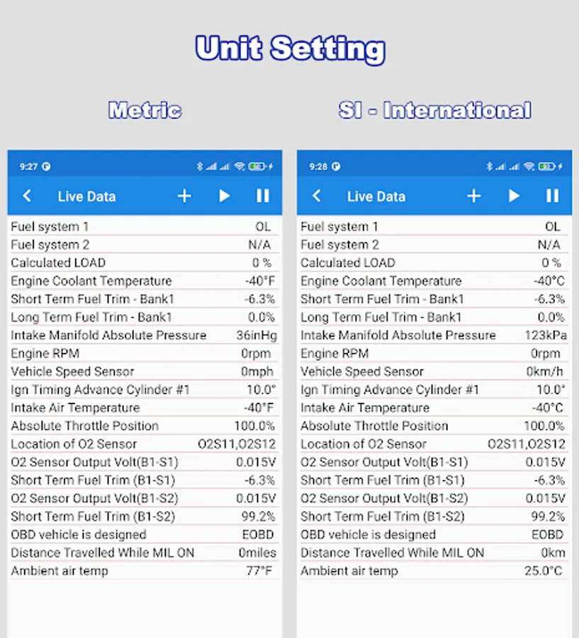 • Data Log/Live Data: full PIDs (support by your vehicle)