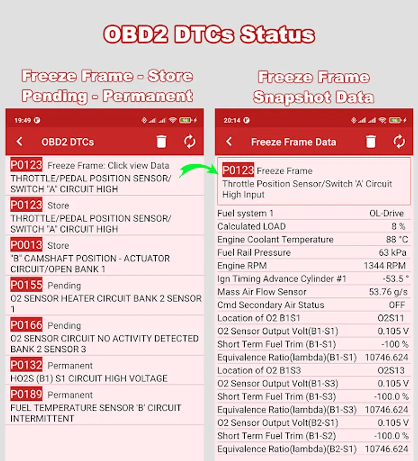 + Build-in DTCs database with over 18000 diagnostic trouble codes