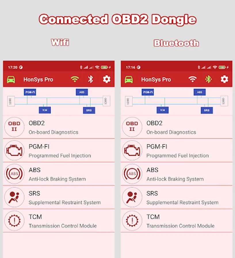 HonSys Scan Pro is fast and easy help you determine: Check Engine Light, Clears Trouble Codes, Read Trouble Code OBD2 OEM Enhance systems: PGM-FI, ABS, SRS, TCM for Honda Vehicle. HonSys Scan Pro requires OBD2 Bluetooth adapter or WiFi OBD2 adapter to work.