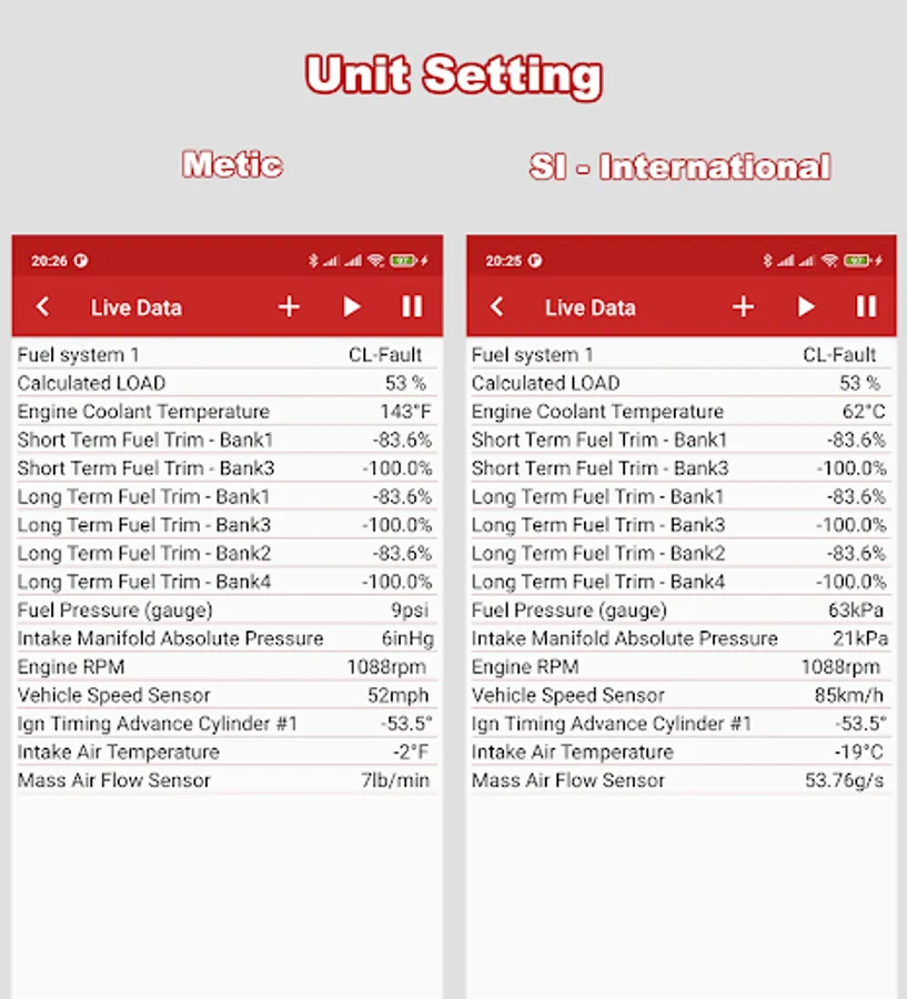 • Data Log/Live Data: Full PIDs (support by your vehicle)
