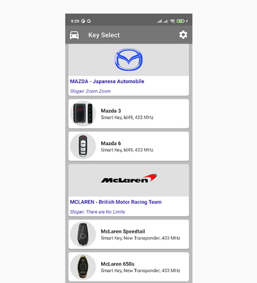 Note: The current this app not connect to control car. It only key fob simulator.