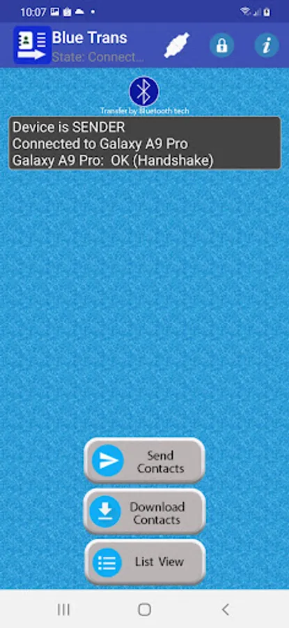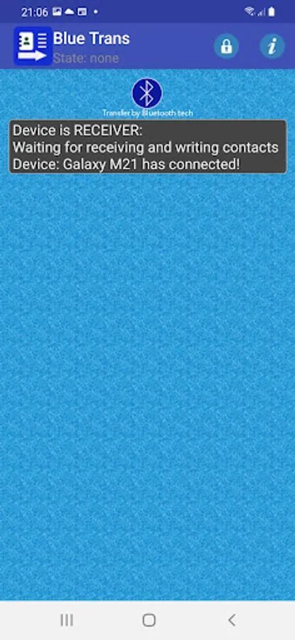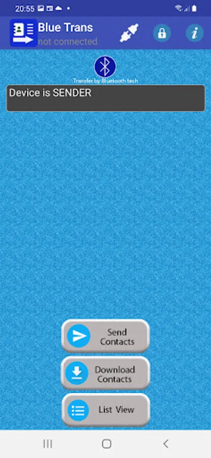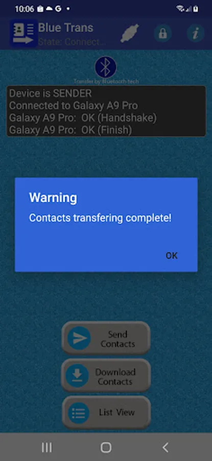 * This app is free and it is allowed to transfer only 30 contacts of your phone book from your phone to other (or new) phone. When the app is unlocked, it can transfer entire your phone book from your phone to other (or new) phone