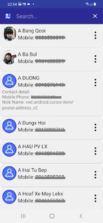 The App also supports search view function when listing contacts, after a search you can see the total number of items in contacts by click on any item.