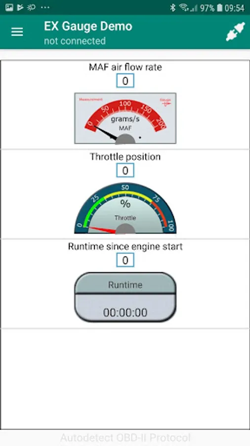 You must choose your bluetooth OBDII device by select the correct it's name (or it's max address) in the list and click on the item, then the app starts connecting process and autodetects the OBD-II protocol.