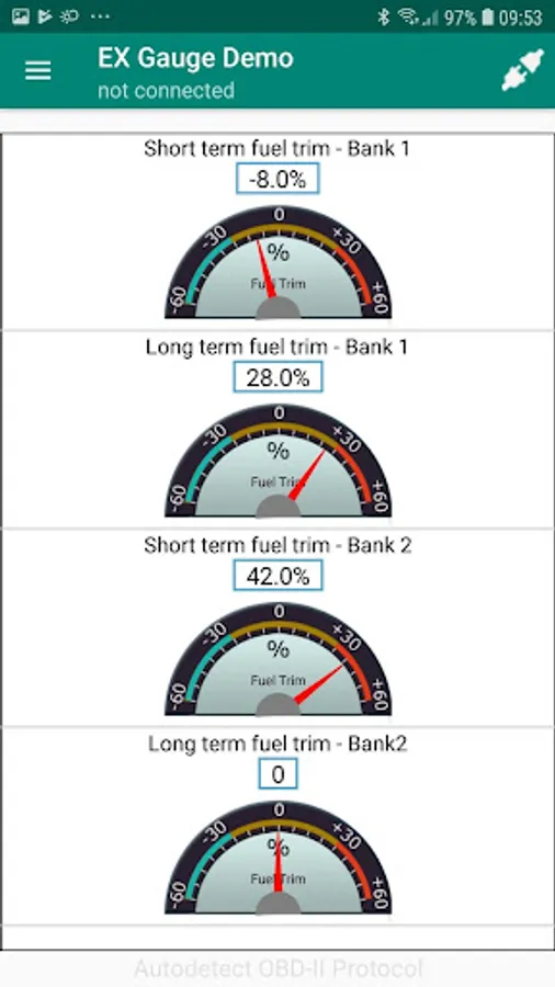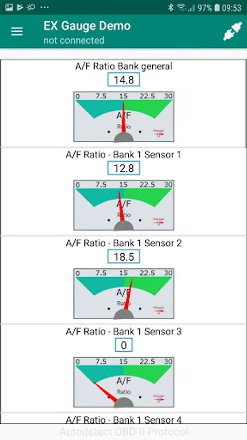 1. If the app detects some amount of gauges supported by the car, it notifies you to buy the EX GAUGE PRO version with full unlock functions