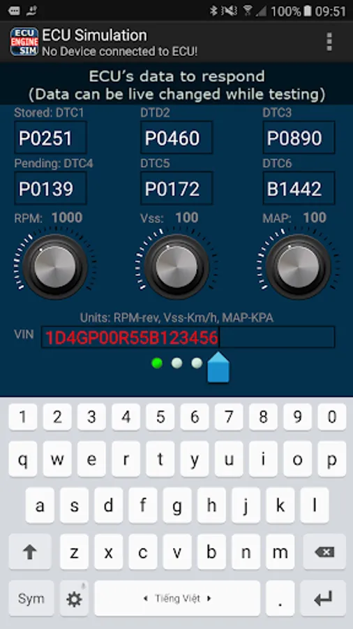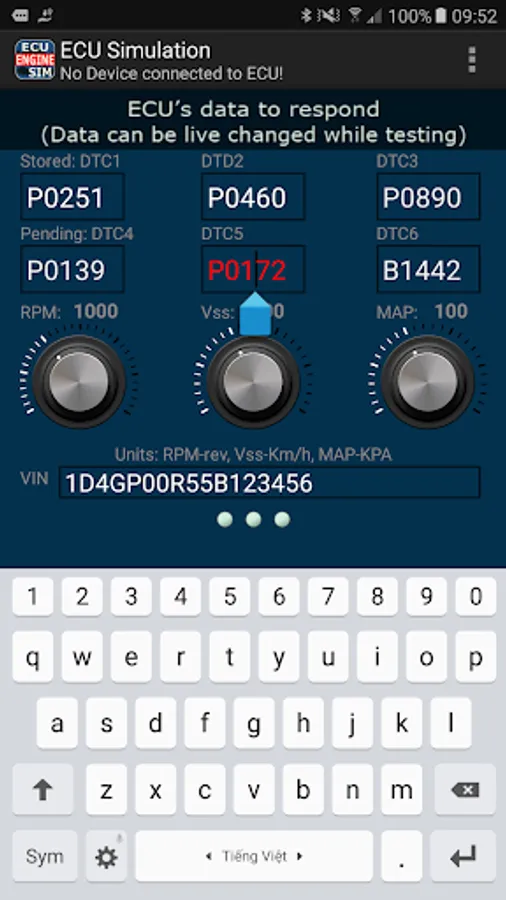 After starting the application, the starting screen appears and you only need to tap the button "Start simulating the ECU" to start the ECU simulation process, the data screen appears