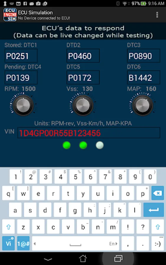 Using this app you don't need a real car, stay indoor and do all testing before doing with a real car