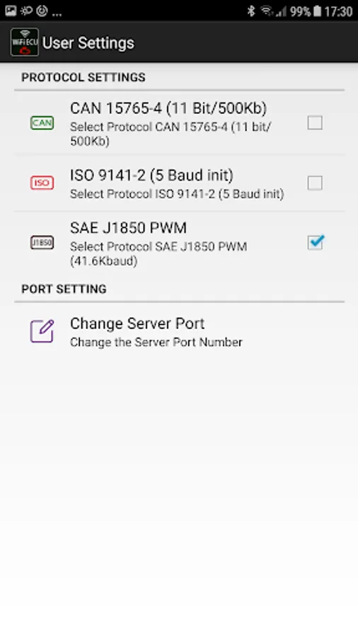 The ECU Engine Simulation emulates 3 OBD-II protocols: