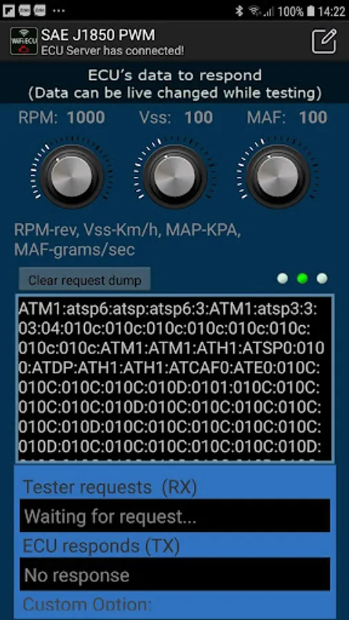 The ECU Engine Simulation works like a data server, so it waits (listen) for data request (AT or OBD-II commands) from external tester, then processing and responds to the request