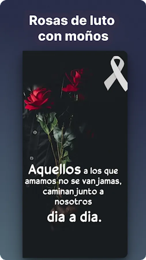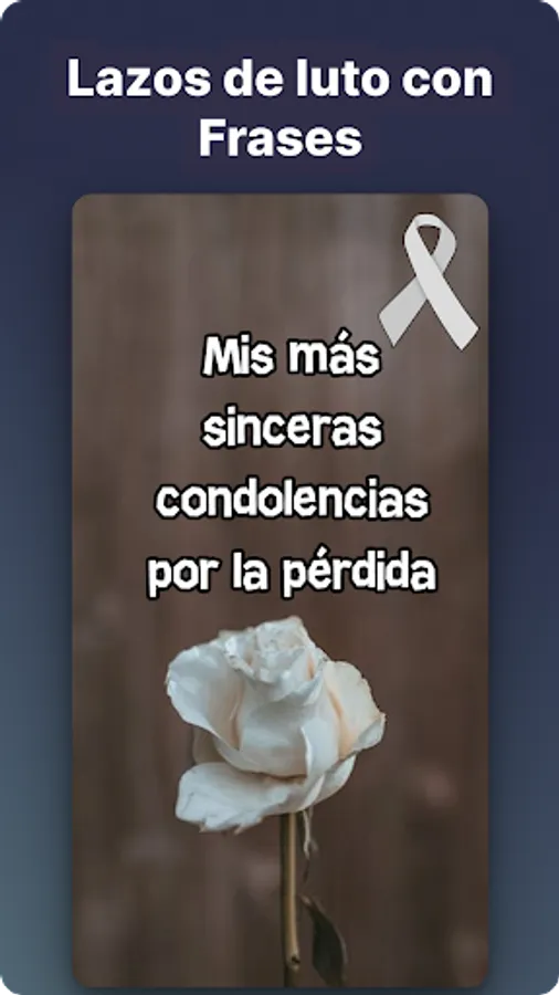 To help you share your feelings we have created this application and designed the messages of mourning and condolences and put them in images of white roses of mourning, we also put roses with phrases of condolences, so you can share freely on the social networks of your preference. much that you mourn your friends for the death of a mother, a father, sister, uncle, aunt, grandmother, grandfather and in an easy and intuitive way.
