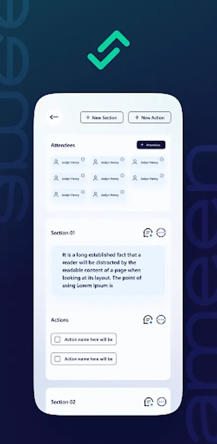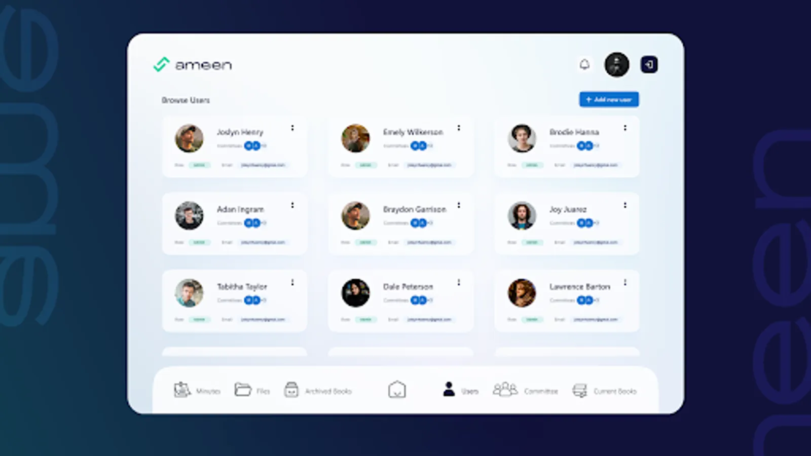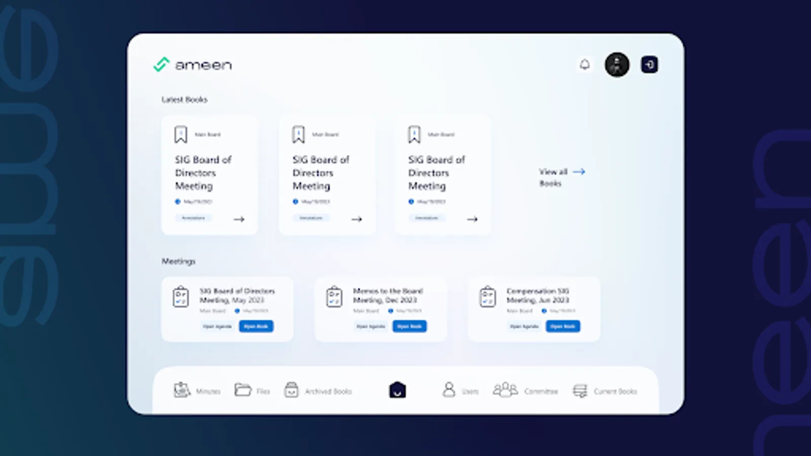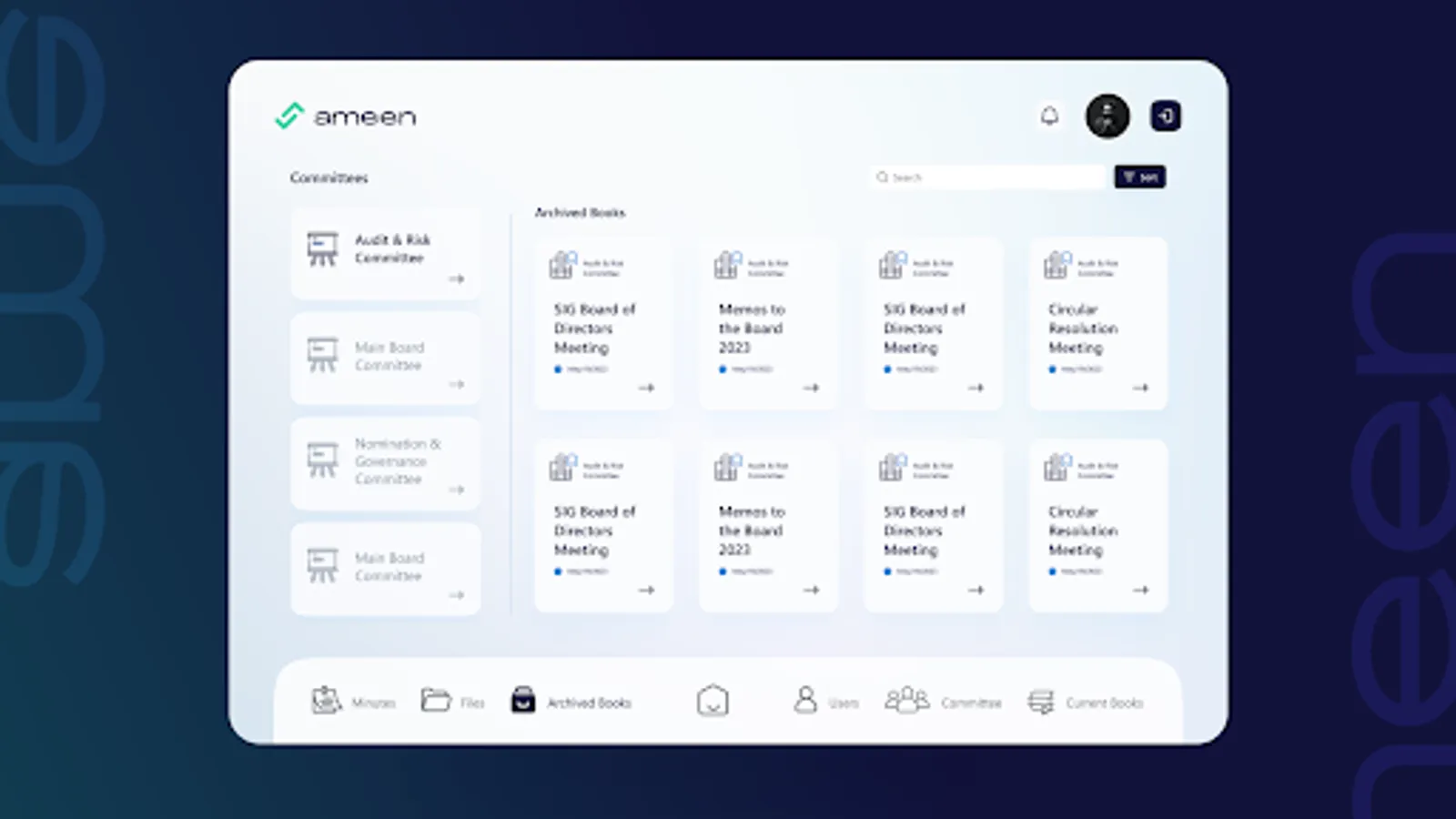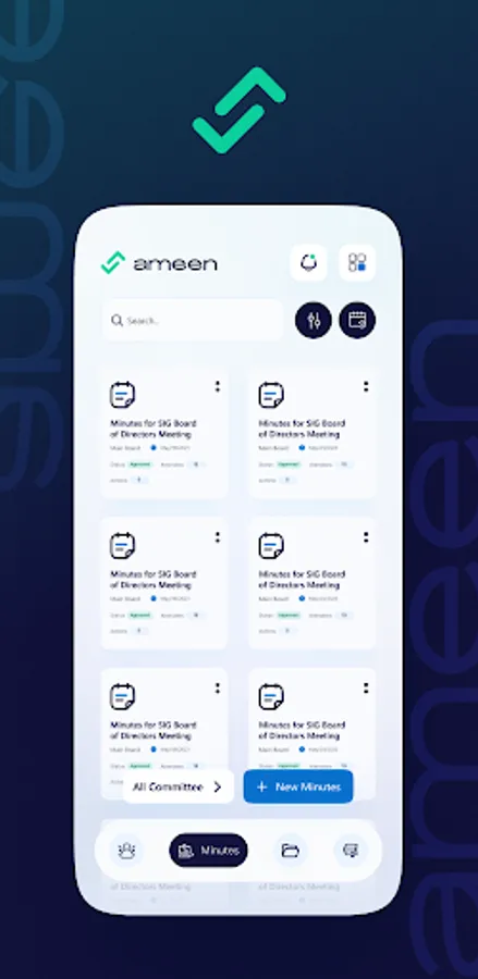 Ameen Board is an app that allows you to register meeting minutes. The app is designed to help you keep track of your meetings and ensure that all important information is recorded. With Ameen Board, you can easily create and manage meetings, add participants, and record minutes. The app also allows you to set reminders for upcoming meetings and send notifications to participants.