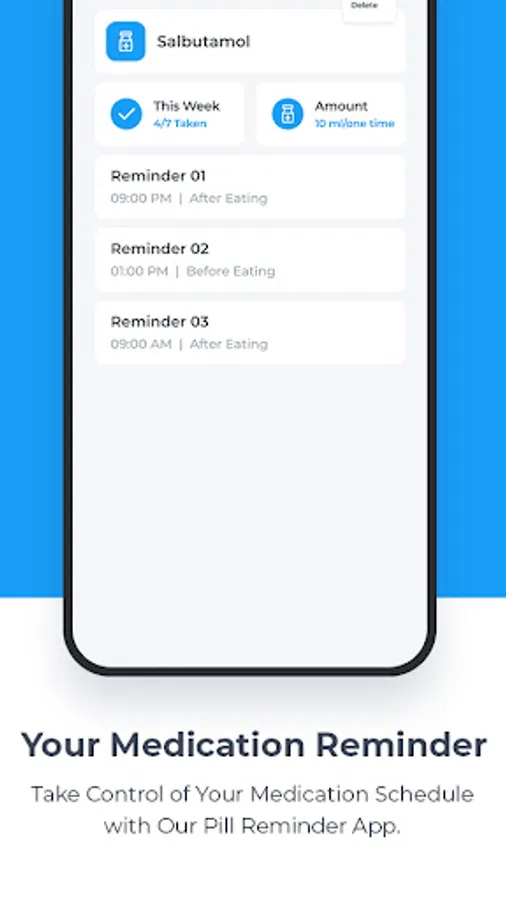 Customizable Reminders: Personalize your medication reminders to suit your needs. Whether you prefer a simple notification or a more elaborate alarm, our app offers a variety of reminder options.