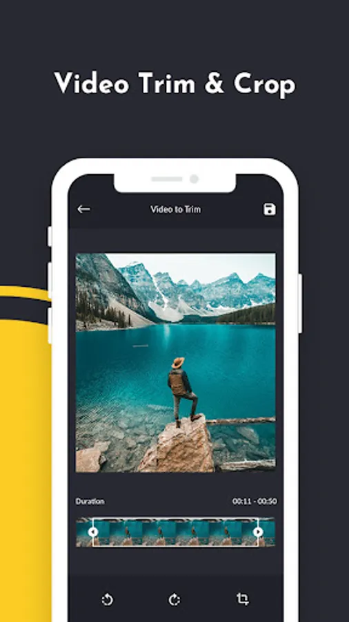 The video trimmer feature enables you to set the video's interval that you want to trim. When you set it, tap the button and get it done. Create a masterpiece and share it with friends on Instagram and TikTok with ease. All video editing tools that you need in one place Trim Video & Crop Video Editor.