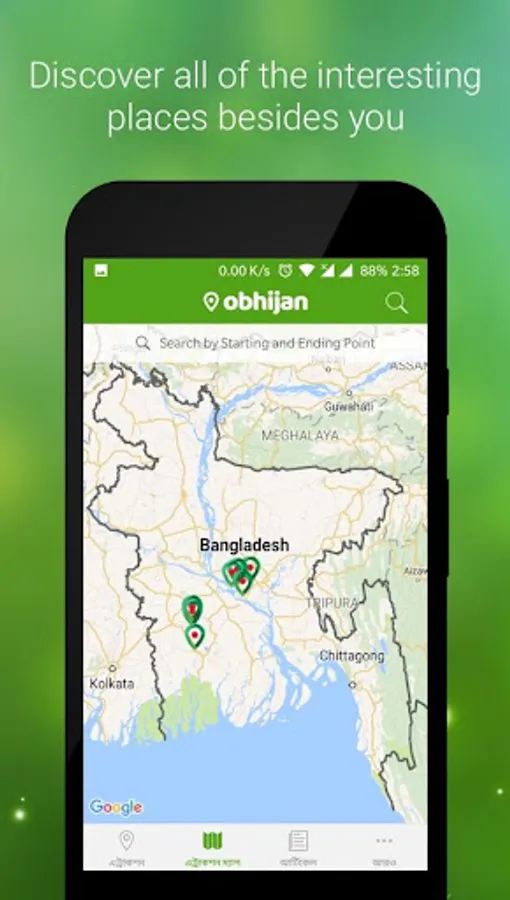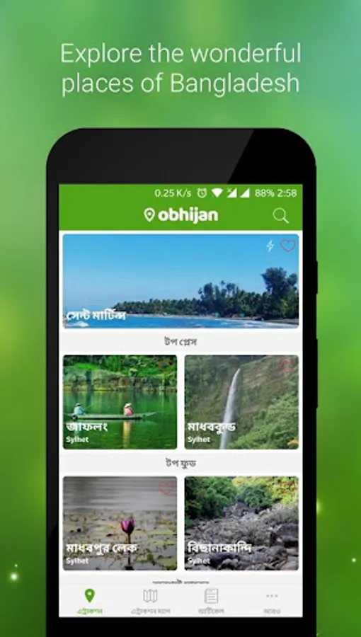An app for the travel junkies. Obhijan lets you explore the hidden gems of Bangladesh and share them with your friends. It is a crowd-sourced platform where you not only get to know about the scenic beauties of the country, but also upload photos and info about places around you. Be it a short 1 day family tour to Gazipur or a week long trekking program in the hill tracks of Chittagong, Obhijan has info about all. A one of its kind app, Obhijan lets you: