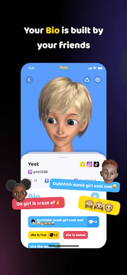 Make friends with your exclusive animated 3D avatar. Get your looks and feel your mood!