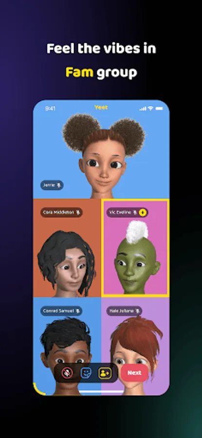 -> Meet new friends by hopping in a random group call room. Get a 1v1 private room when both of you feel the vibes.