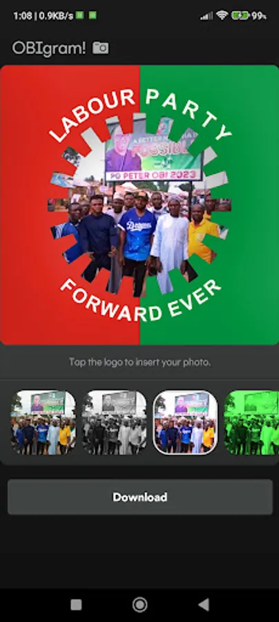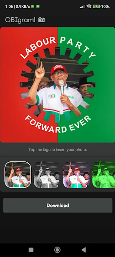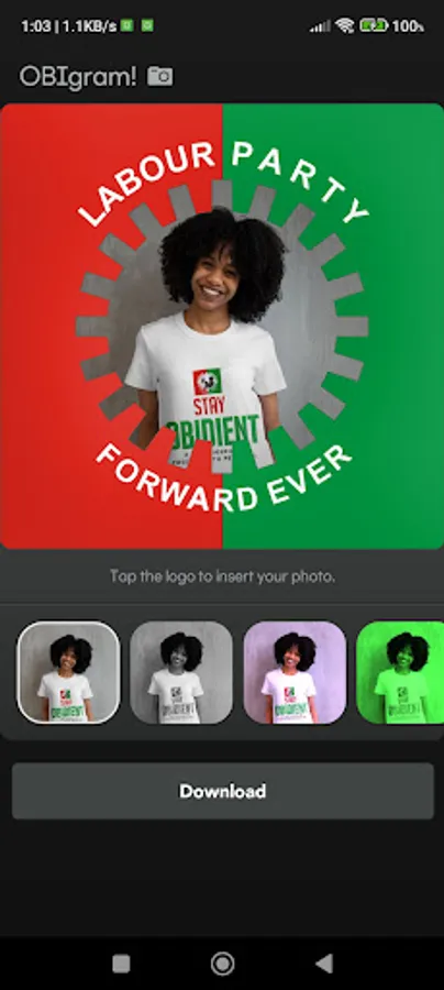 Blend your moment with Labour Party logo, apply filter effects, share with your network OBIdiently.