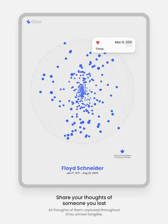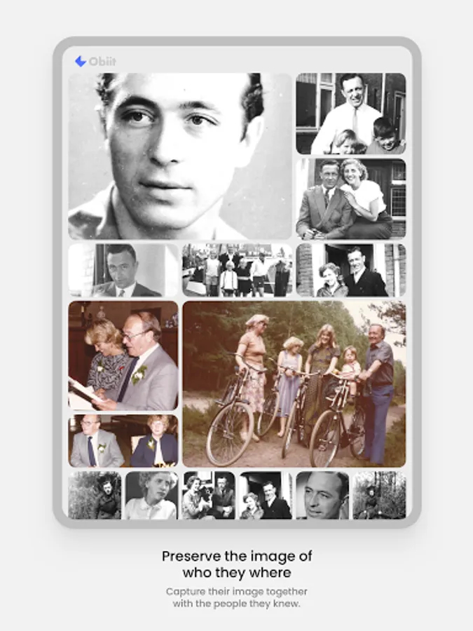 Obiit is where we share the memory of people. Obiit aggregates our thoughts about the people we’ve lost and preserves their image for us.