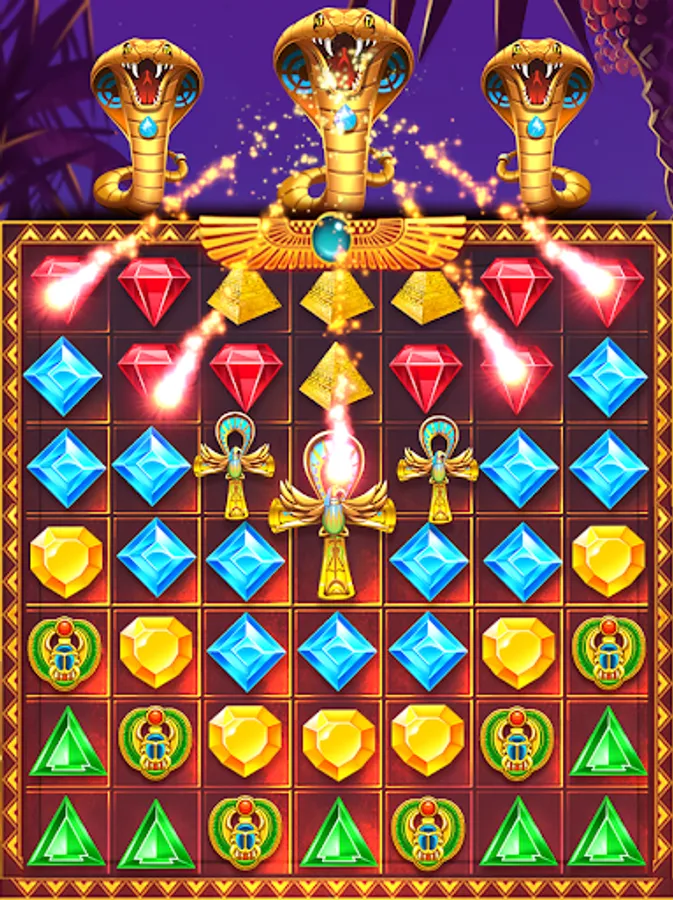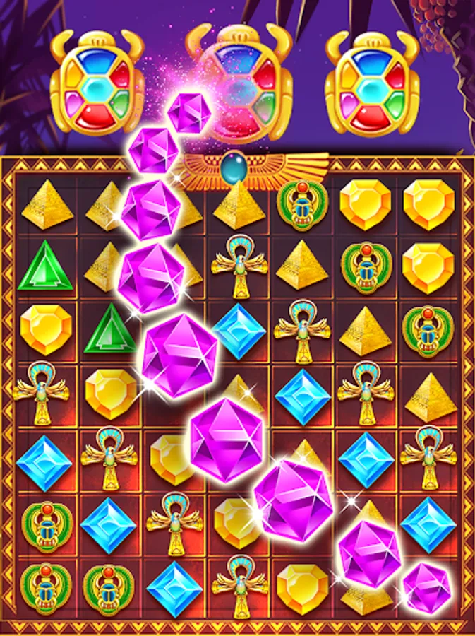 If you really like the jewels type of game, but also very love of Egyptian culture, the pyramid treasure match 3 is your first choice. Come and challenge to see how many meters you can challenge , one meter , two meters , 10 meters , or 100 meters , maybe you're the next one up to people to steal jewels.