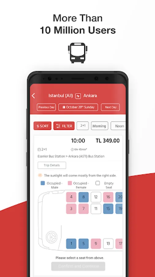 Download the Obilet mobile application now to access the tickets of Turkey's most distinguished flight and bus companies at advantageous prices and start planning your travel. Make reservations at hotels and apartments in the cities you visit; rent a car at the lowest prices for your trip. Obilet now allows you to buy tickets for ferry services and create your travel plans!
