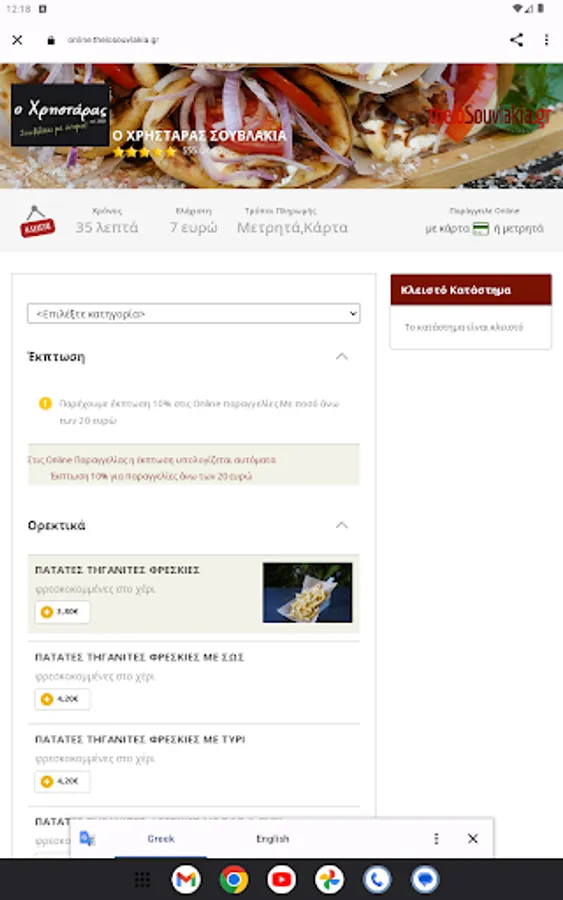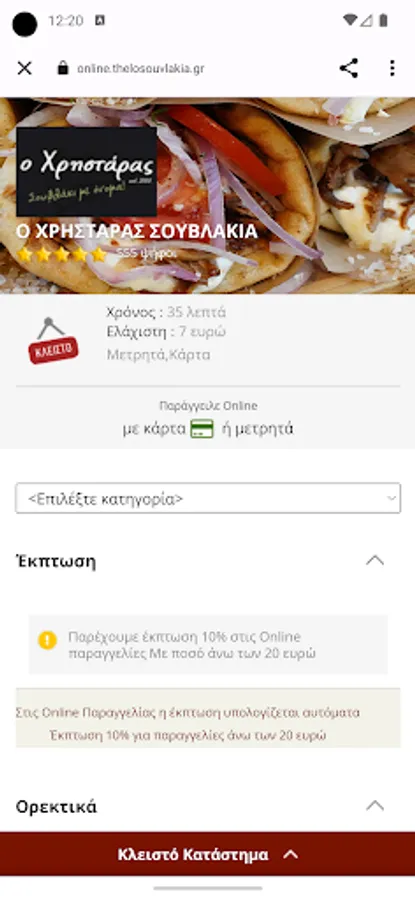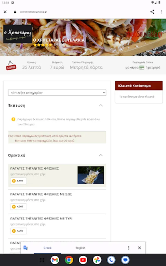 Display and order application of the steakhouse o Christaras, by Thelo App and thelosouvlakia.gr company