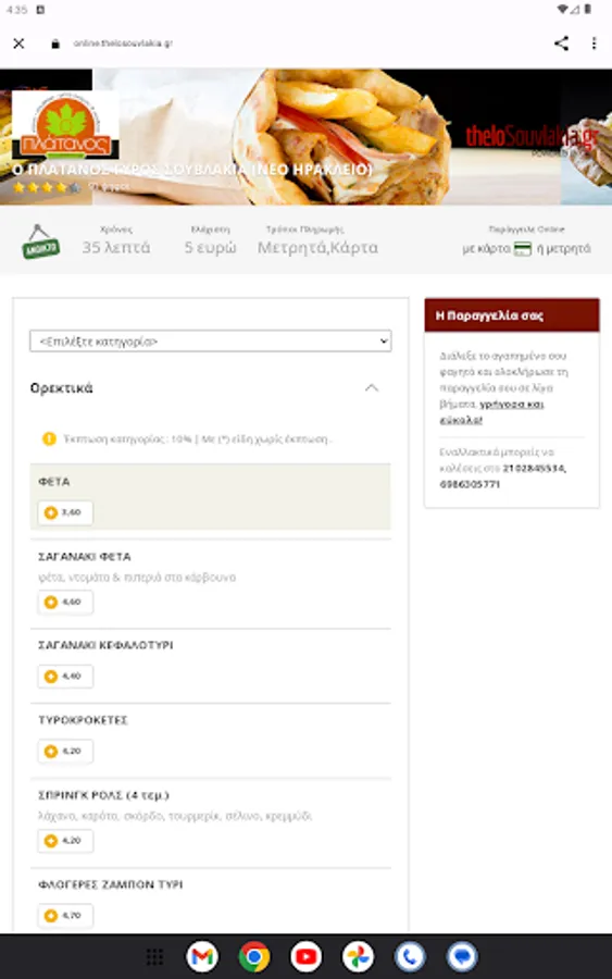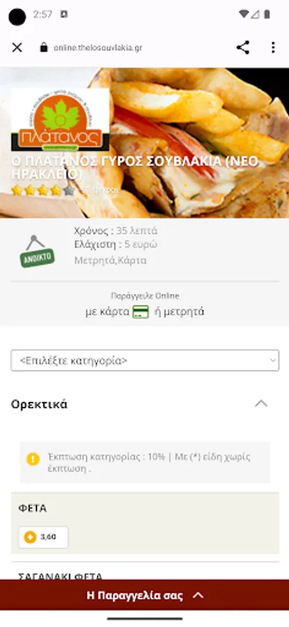 Viewing and ordering application of Platanos steakhouse, by Thelo App and thelosouvlakia.gr company