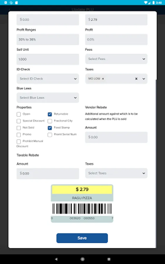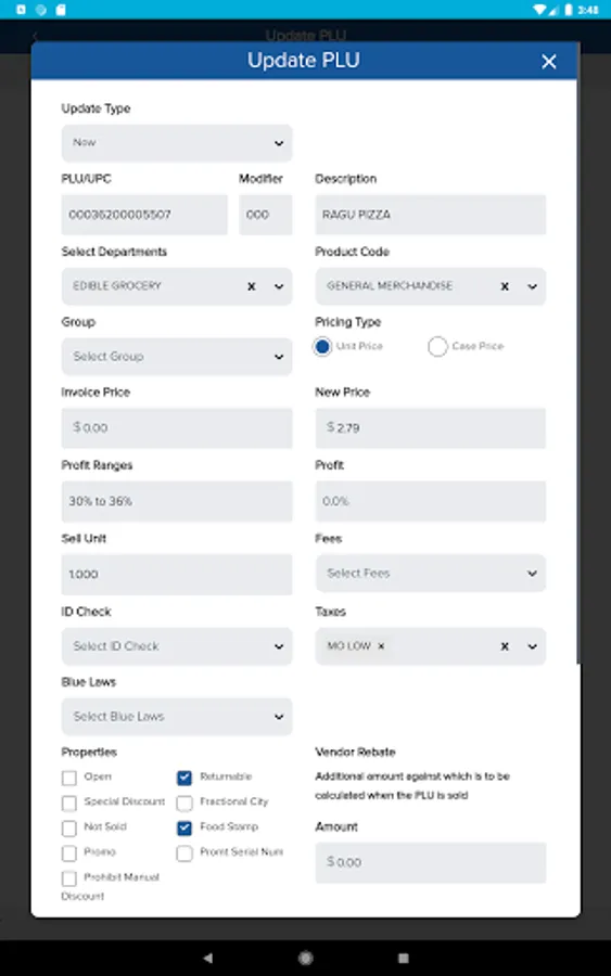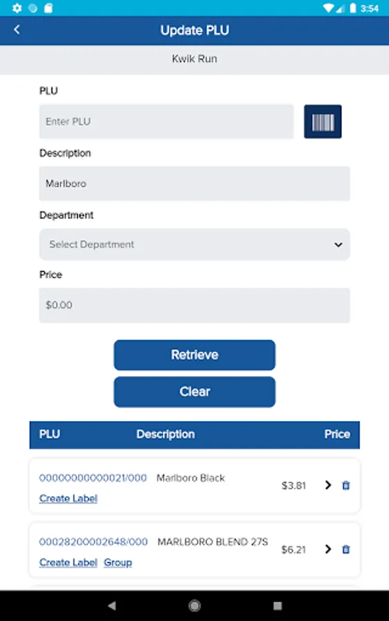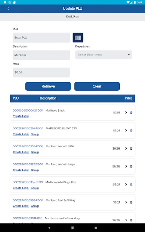 o Effortlessly find an Item or PLU by utilizing the intuitive search feature.