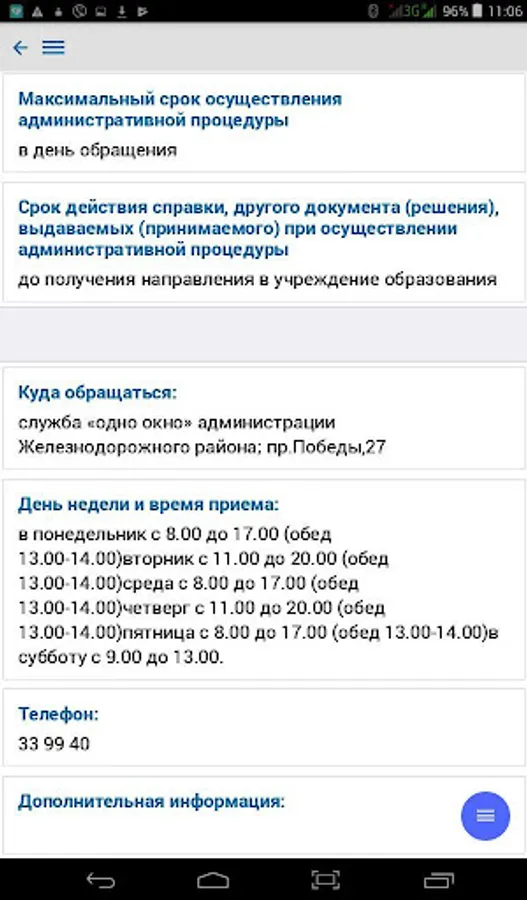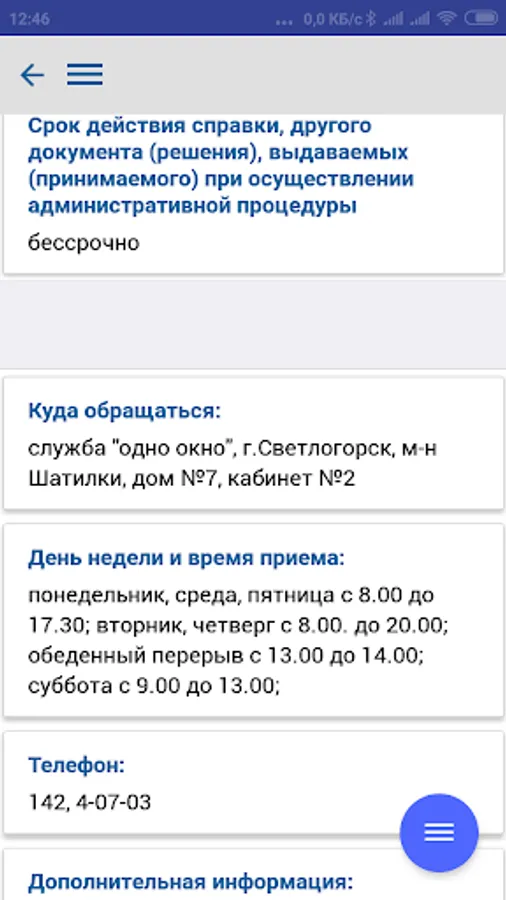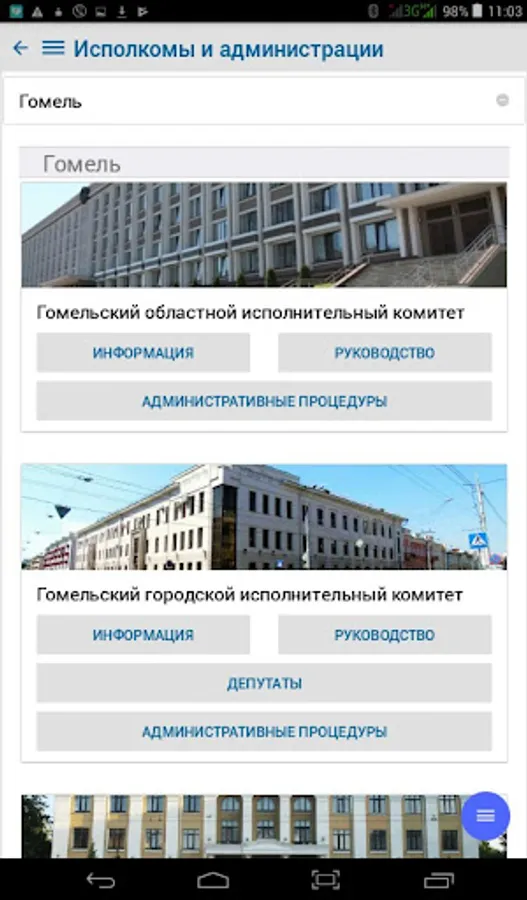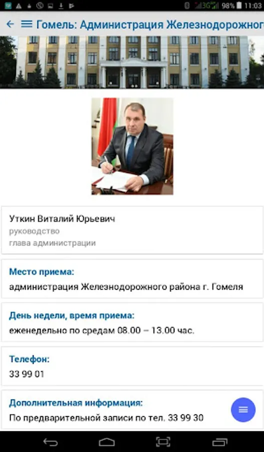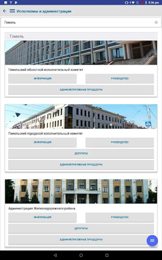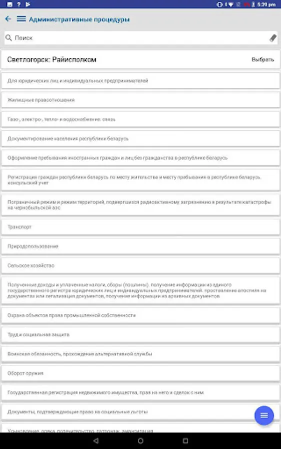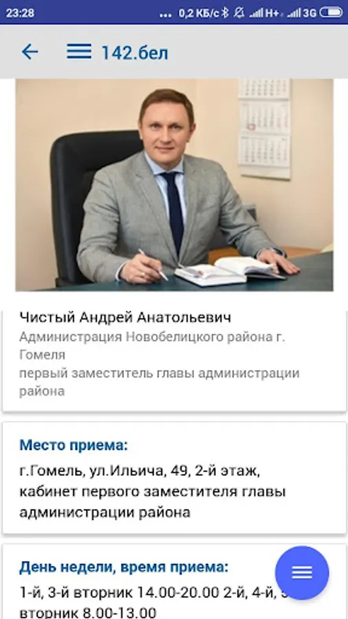 The application contains complete information on the procedure for resolving administrative procedures, in accordance with legislative acts of the Republic of Belarus, reception schedules by responsible persons and the leadership of the regional executive committee, city executive committee, administrations of the city of Gomel, district and rural executive committees of the Gomel region and deputies of the city, regional and district councils, is an additional function of the current telephone and SMS service - "142 - Telephone Reception".