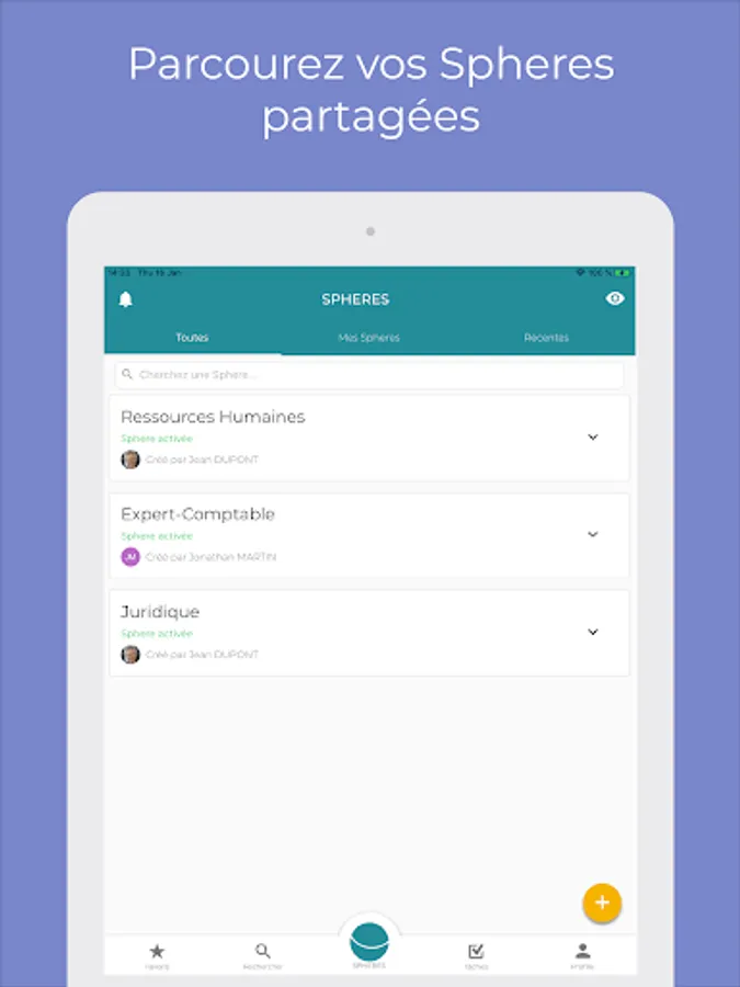The Android-compatible Open Bee ™ Sphere application provides access to your secure collaborative workspaces. Easily create private workspaces and share your information, inside and outside your organization.