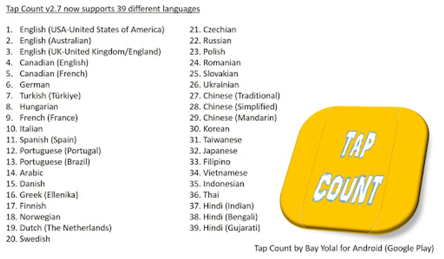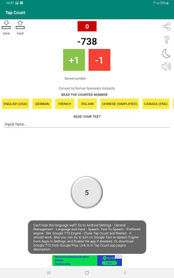 - Read your counted number in 39 different languages