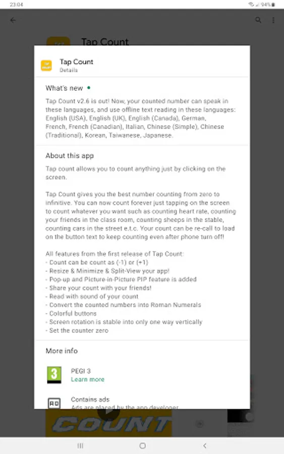 All features from the first release of Tap Count: