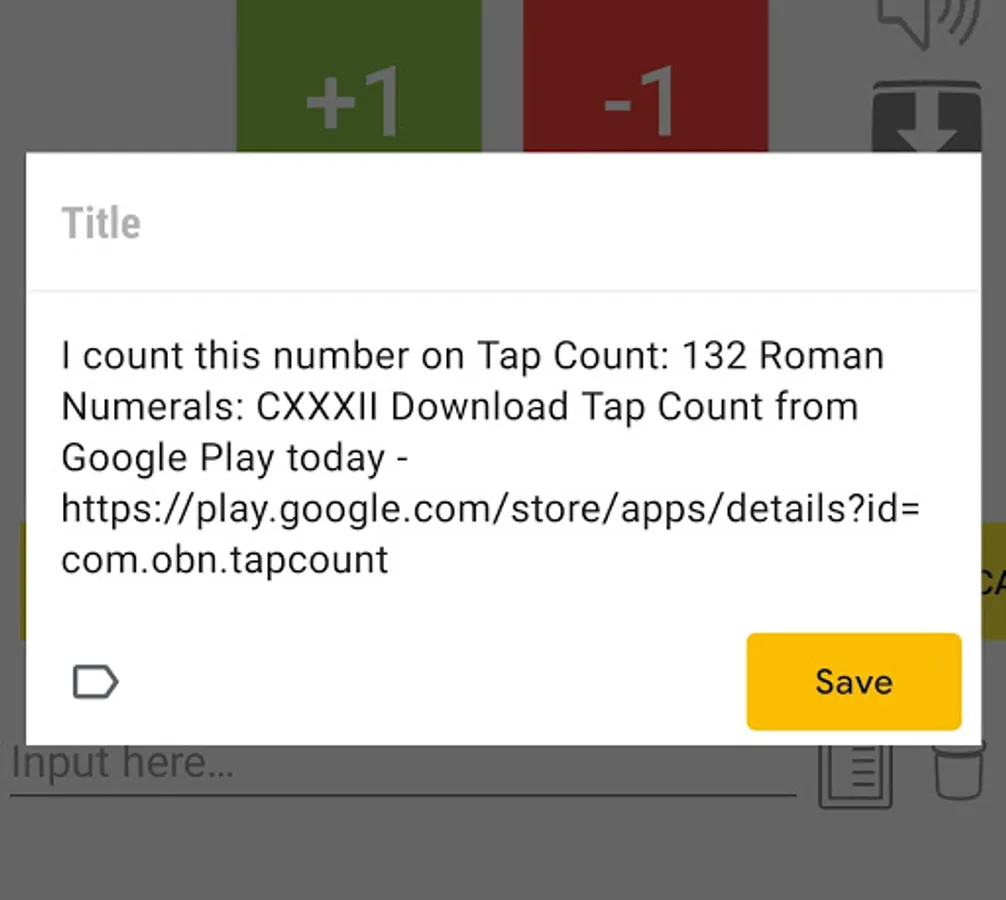 Tap Count gives you the best number counting from zero to-infinitives. You can now count forever just tapping on the screen to count whatever you want such as counting heart rate, counting your friends in the classroom, counting sheep in the stable, counting cars in the street e.t.c. Your count can be re-called to load on the button text to keep counting even after the phone turns off!