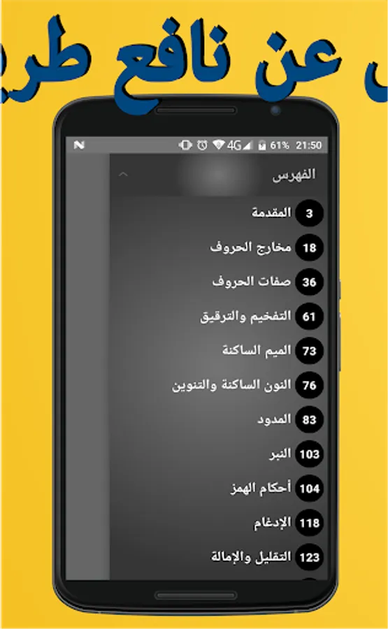 • After opening the application of the provisions of the Quran Warsh from Nafi from road Asbahani can sail in the doors of the application of the provisions of the Quran Warsh from Nafi from the road Asbahani either dragging a list of the right, to show you a list of browsing on the application of the provisions of the Quran Warsh from Nafi doors through Asbahani.