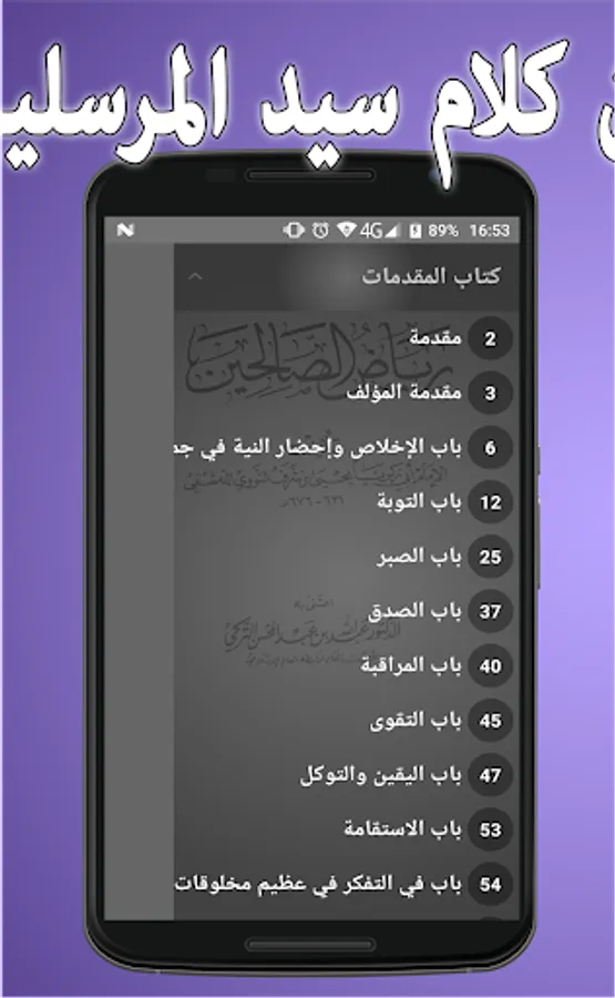 • Once you open the navigation menu in the application of Riyad righteous from the words of the messengers shows you the open door is a dark background.
