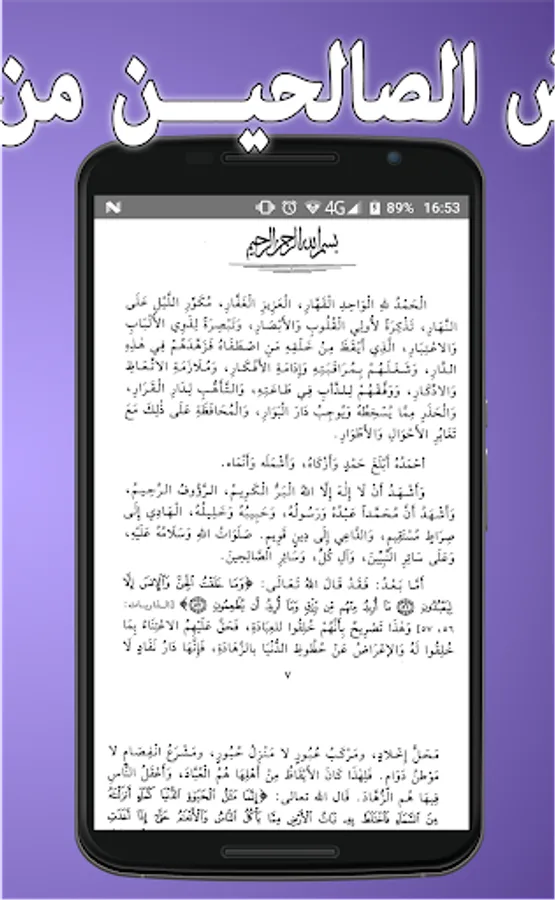 • Can apply Riyad from the words of the messengers to save another page in the application has read to facilitate the completion of reading in the application of Riyad righteous from the words of the messengers.
