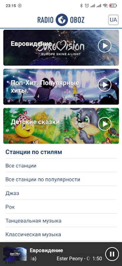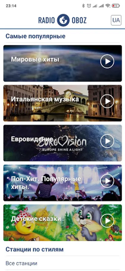 Radio Obozrevatel is the first service of music Internet stations in Ukraine. This round-the-clock "broadcasting" in the network of more than 80 stations, which presents all styles and trends of modern and classical music - from jazz and classical music, rock music and disco to RnB, hip-hop, rap. Latina, bossa nova, Ukrainian, French, Italian, oriental music and children's songs and fairy tales are presented separately. On our website and in the application, you will find music for every taste, from any era.