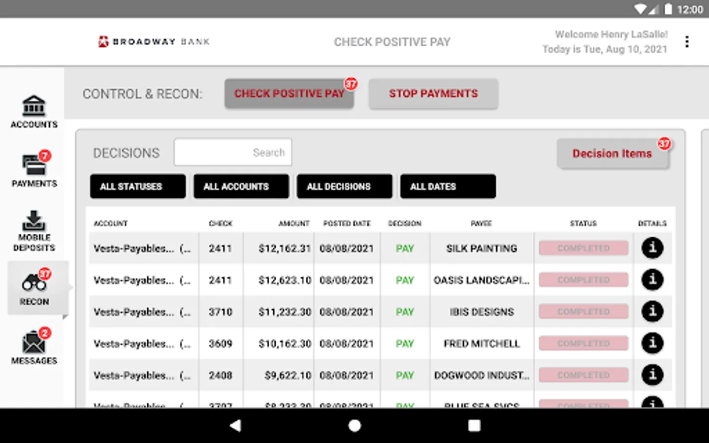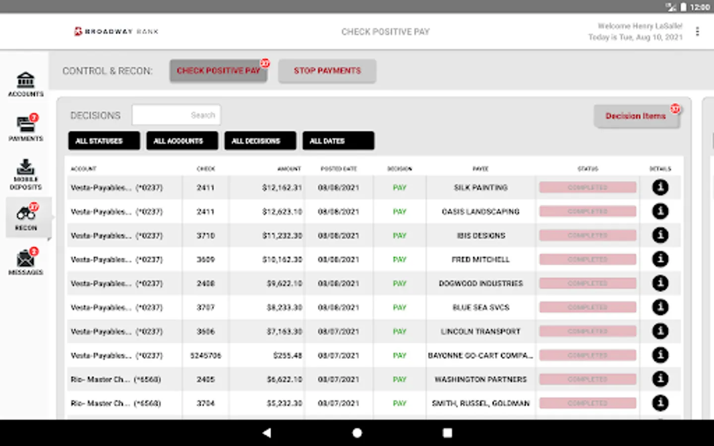 - Place stop payments