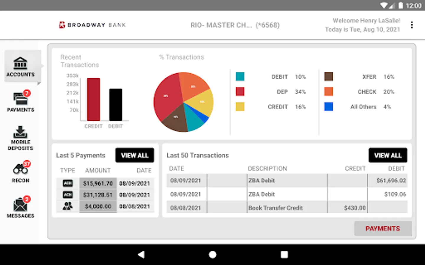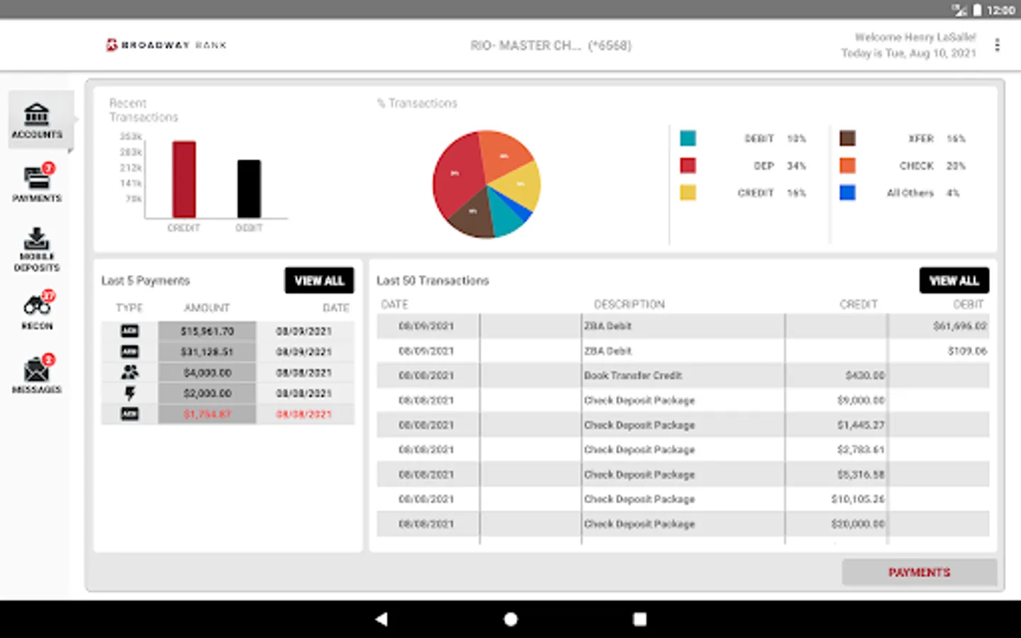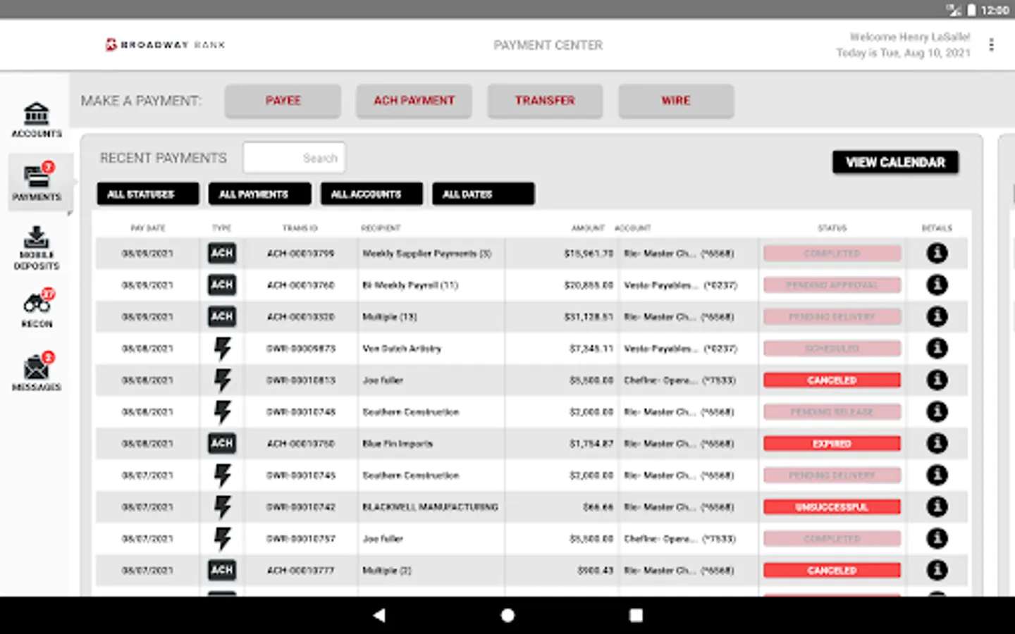- Initiate ACH and wire transaction
