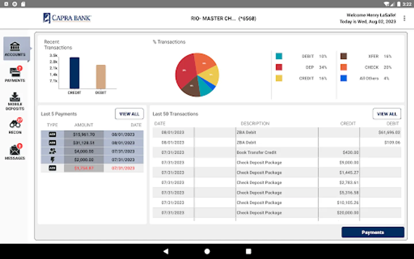 transactions, initiate and approve outgoing payments, conveniently deposit checks, receive critical transactions alerts, and more. Whether you're