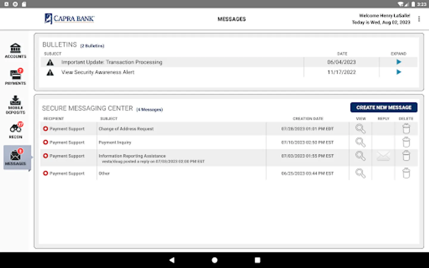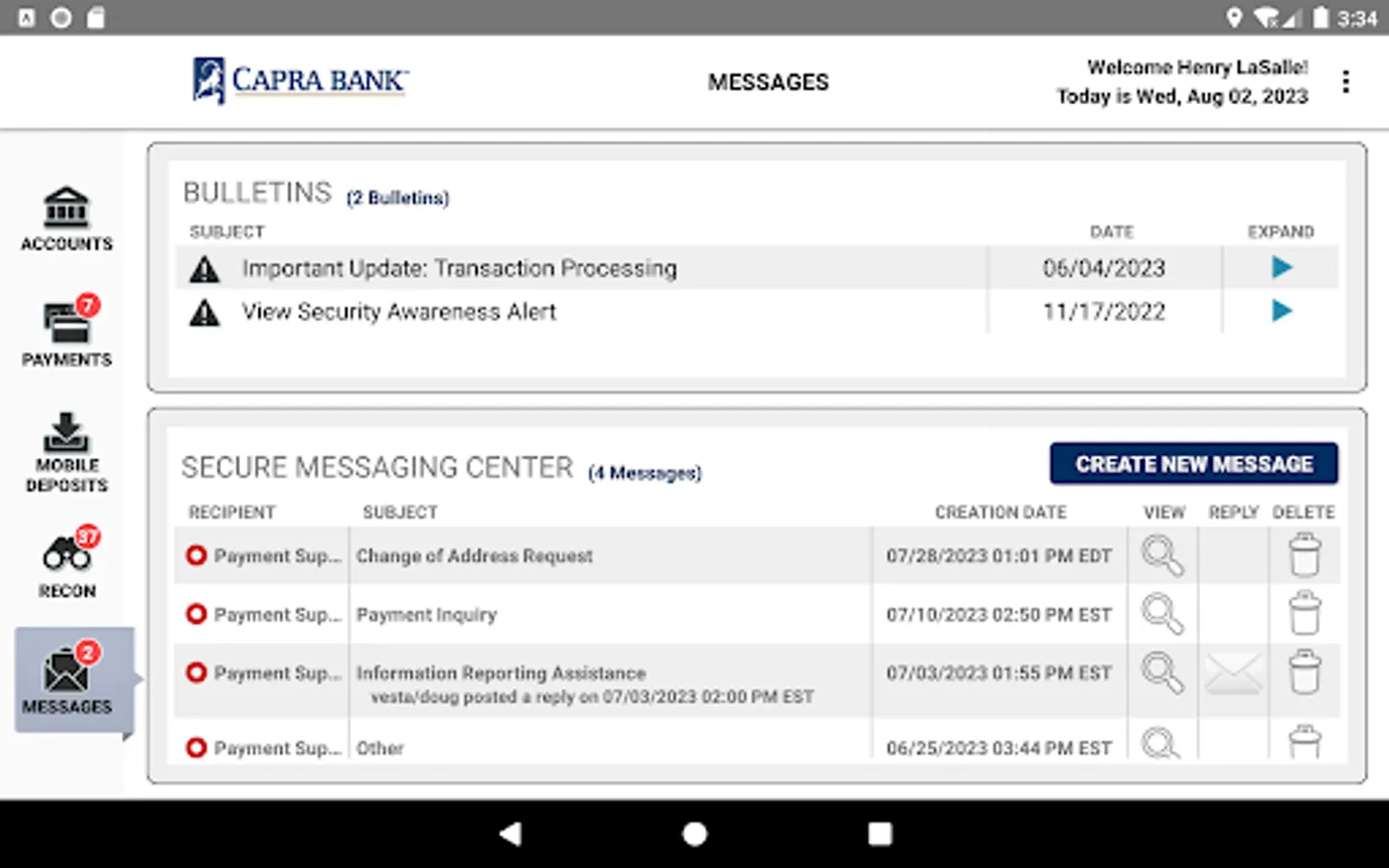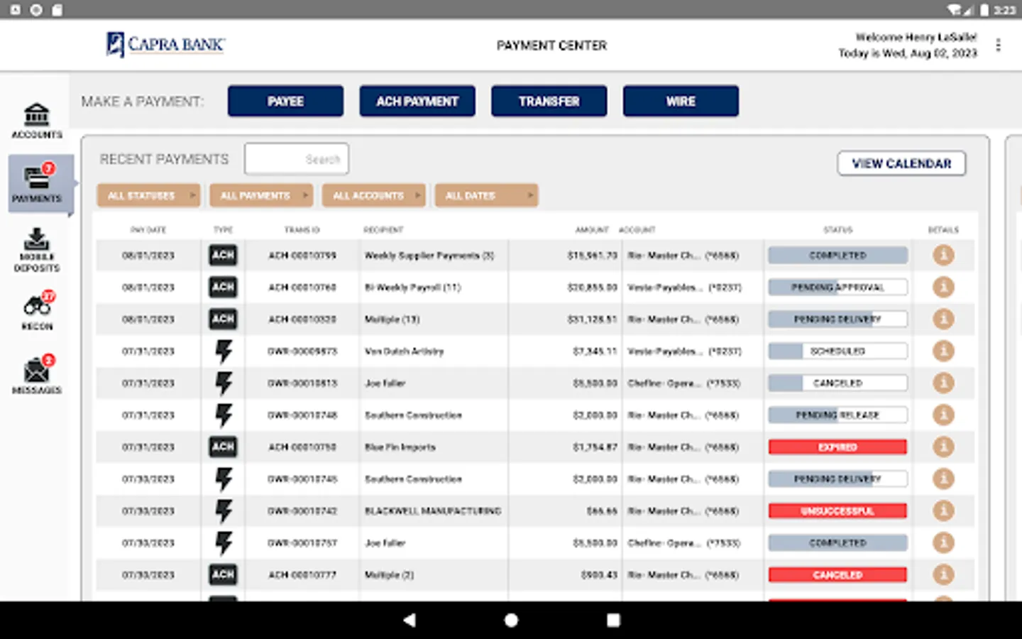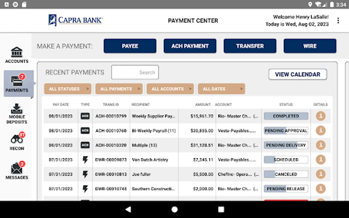With the new Capra Bank Commercial app, manage your commercial accounts anytime, anywhere.Easily monitor account balances and