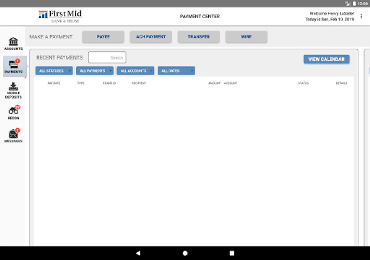 To enroll in First Mid Business Mobile, you must have a First Mid business account. Bill Pay functionality requires a First Mid Bill Pay account. Cash Management services require enrollment in these additional services.