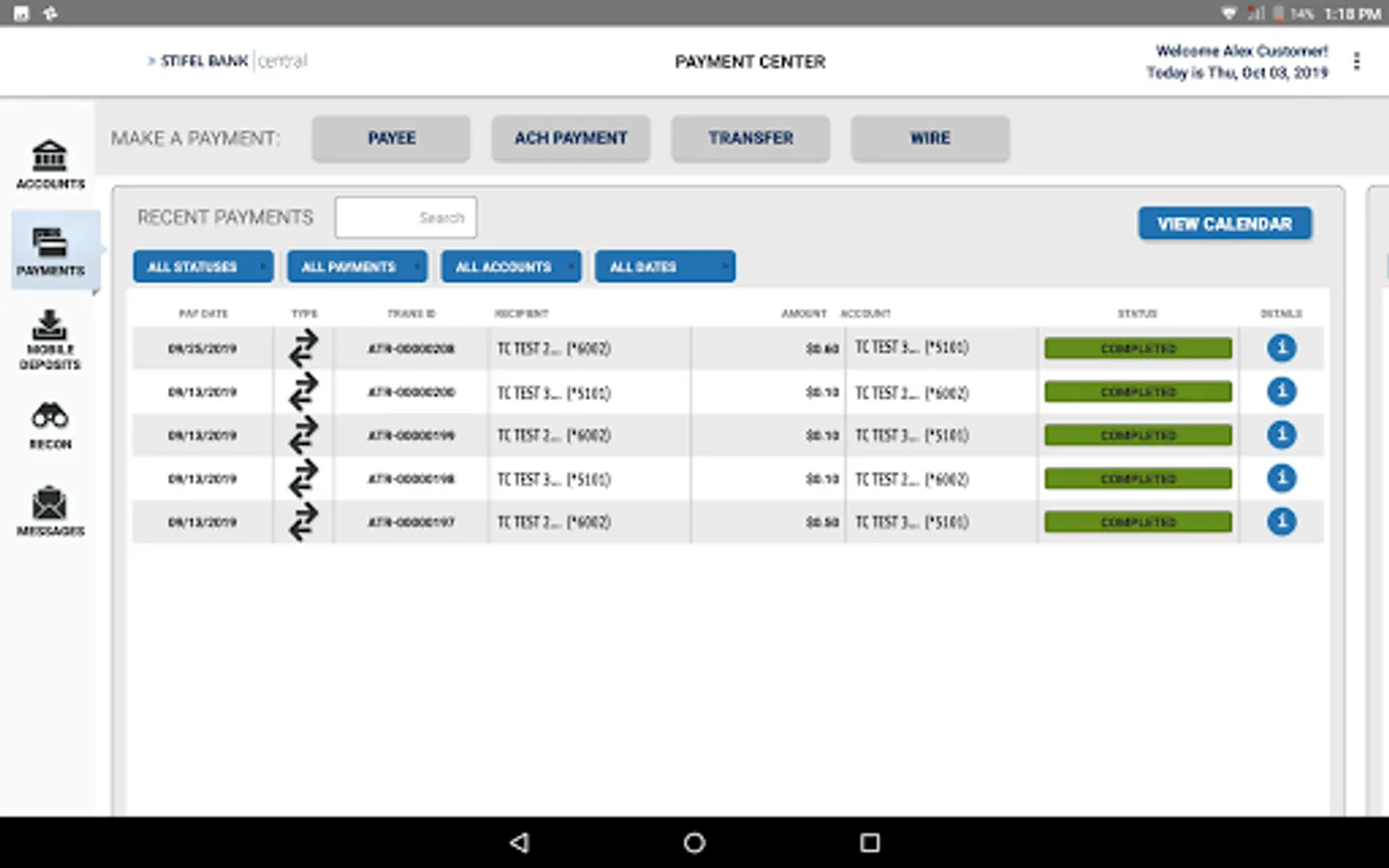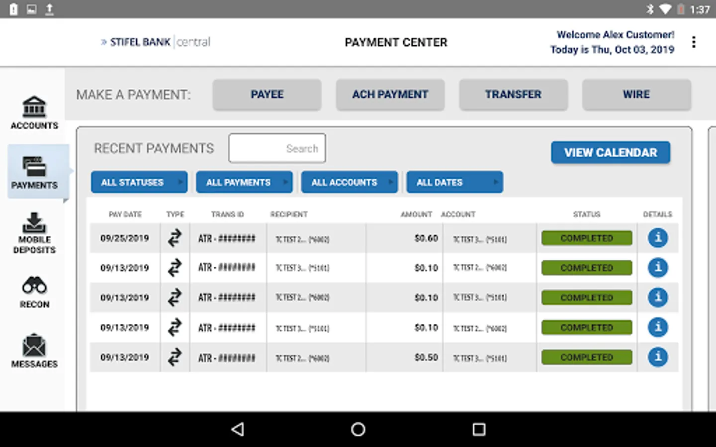 Features of our Stifel Bank Central Business Banking App: