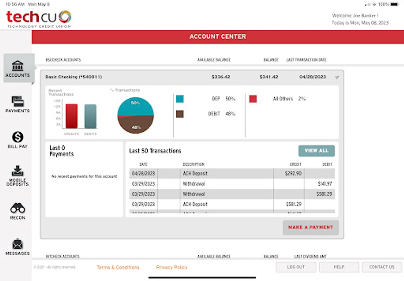 Enjoy the convenience of Mobile Banking with Tech CU’s free business mobile banking application.*