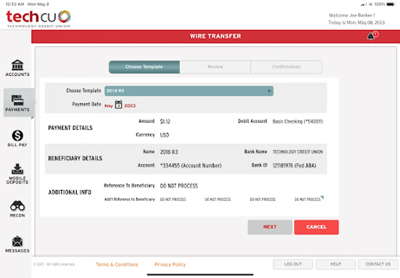 • Tech CU Business Mobile Banking is encrypted using the latest Transport Layer Security (TLS) protocol, which provides the highest level of security available