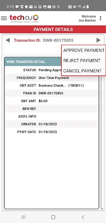 TECH CU BUSINESS MOBILE BANKING FEATURES
