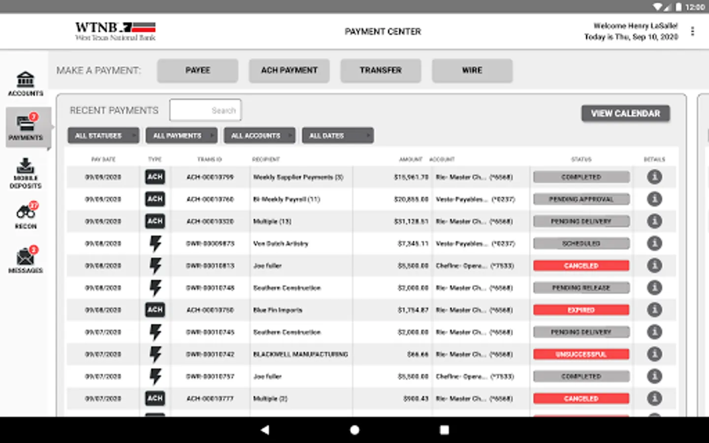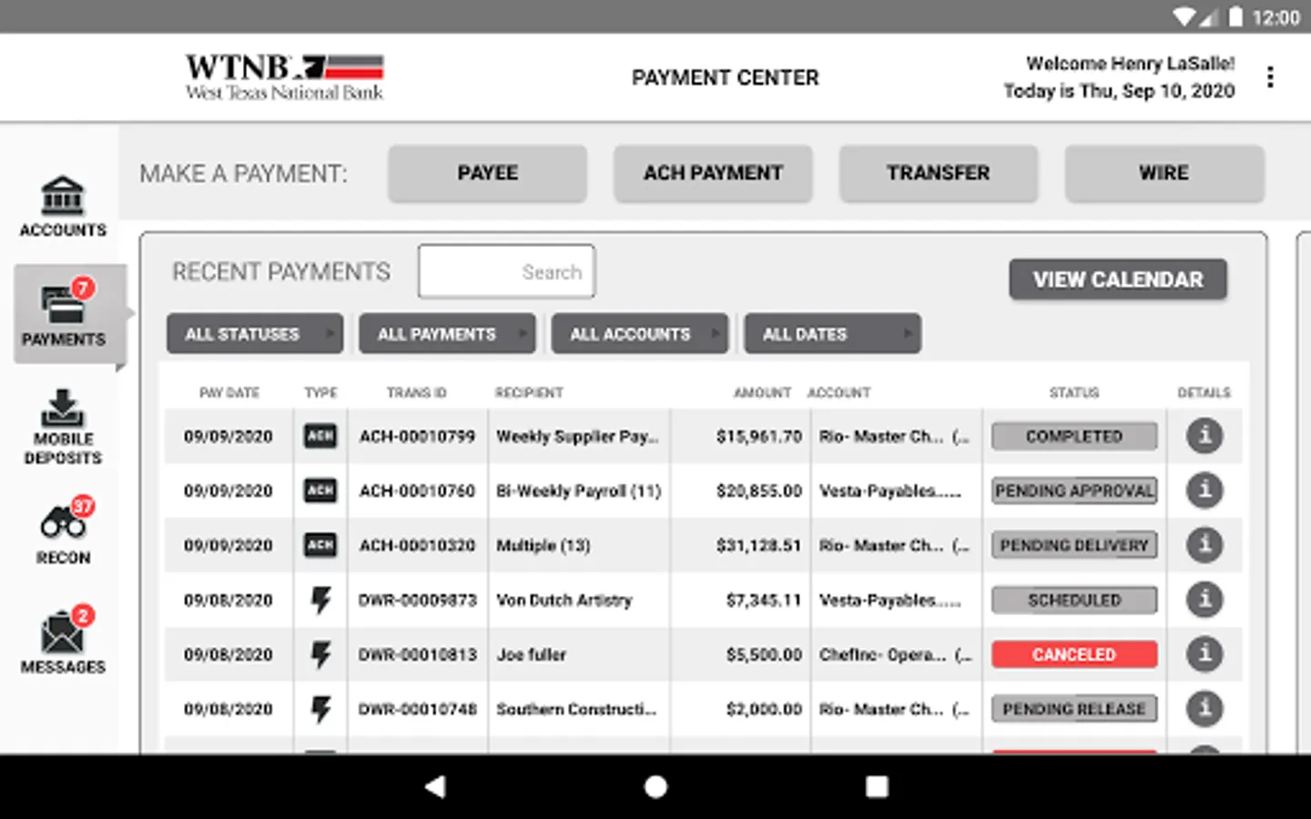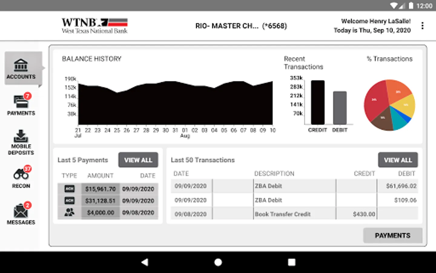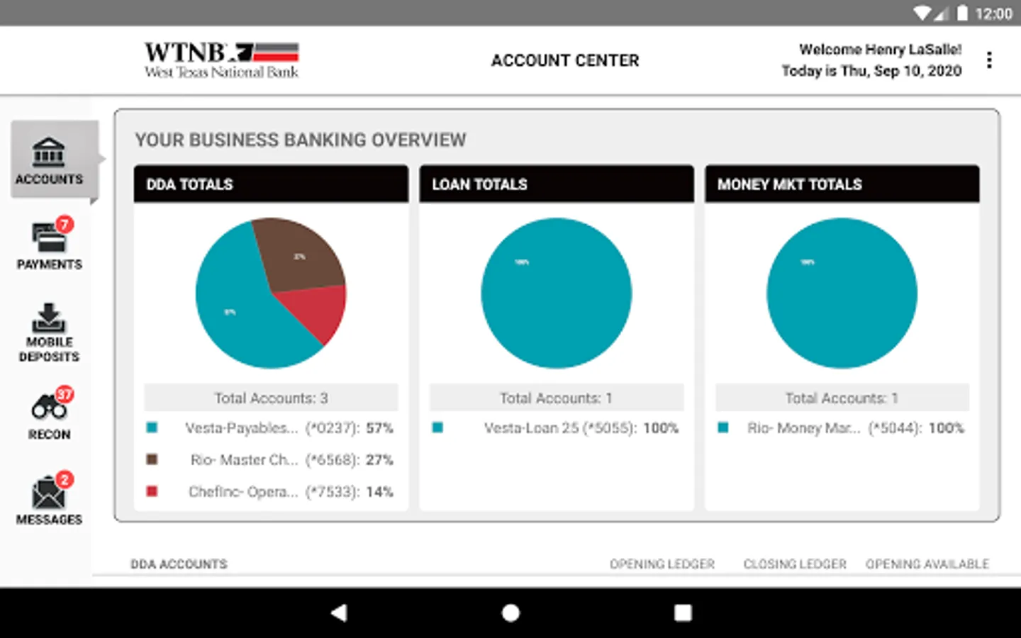 WTNB Business Banking App for Treasury Cash Management Services including ACH, Wires, Positive Pay and Online Banking and Online Bill Pay