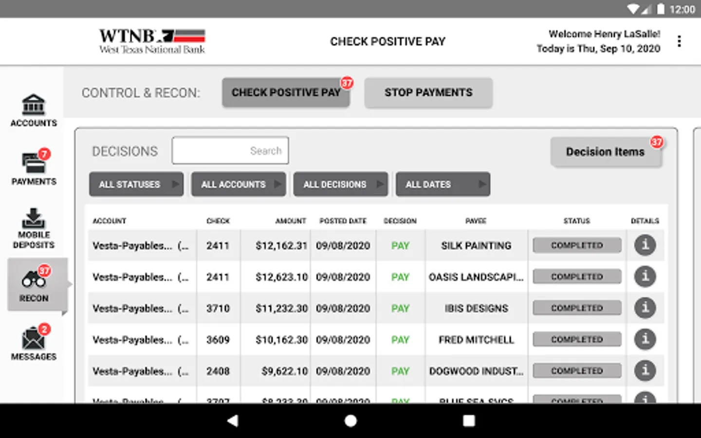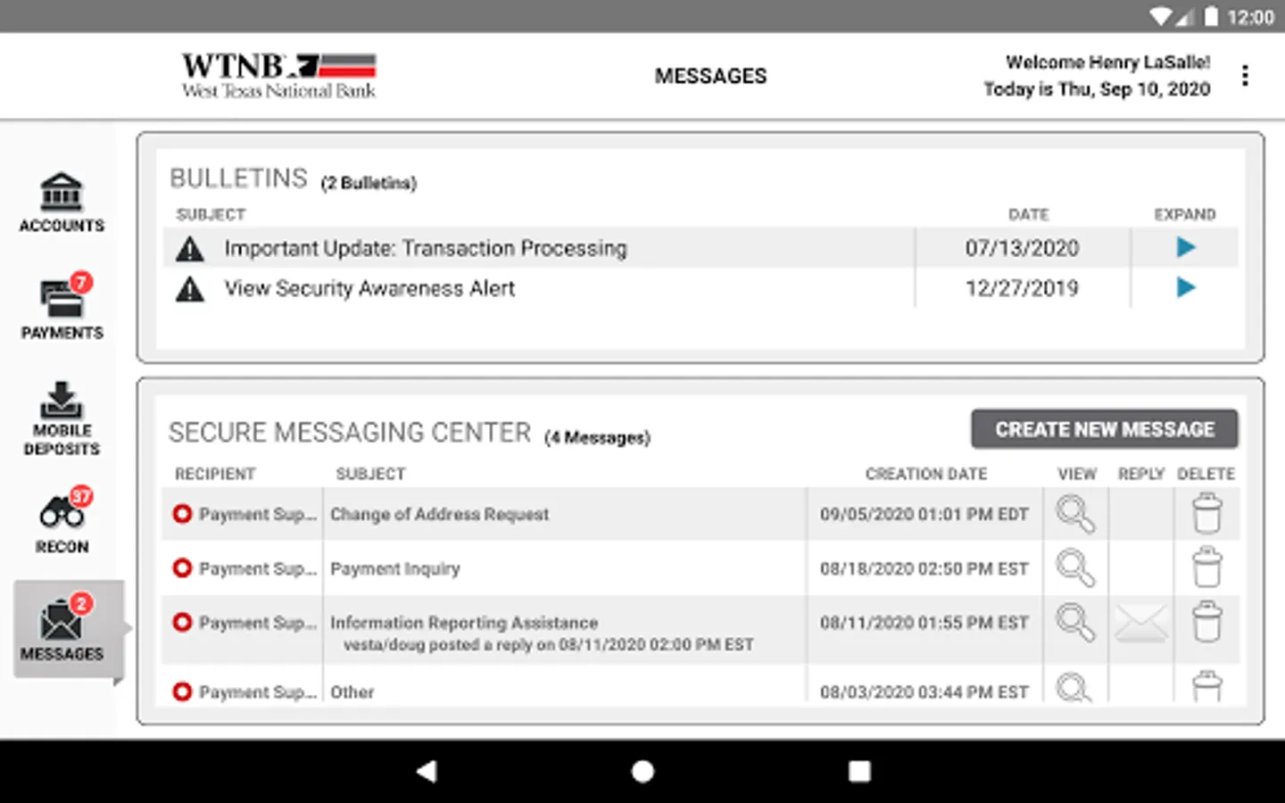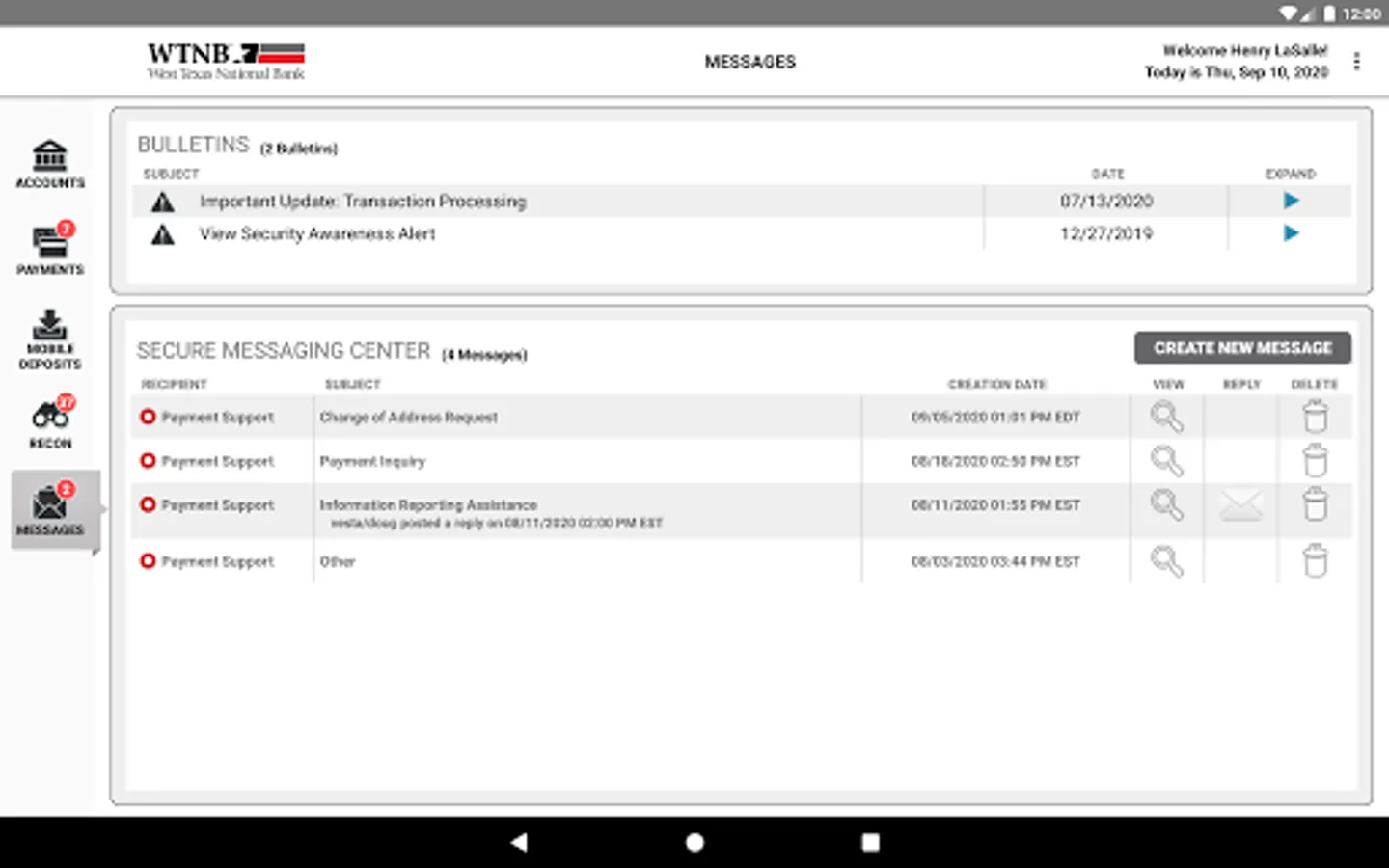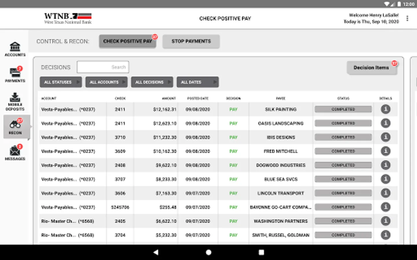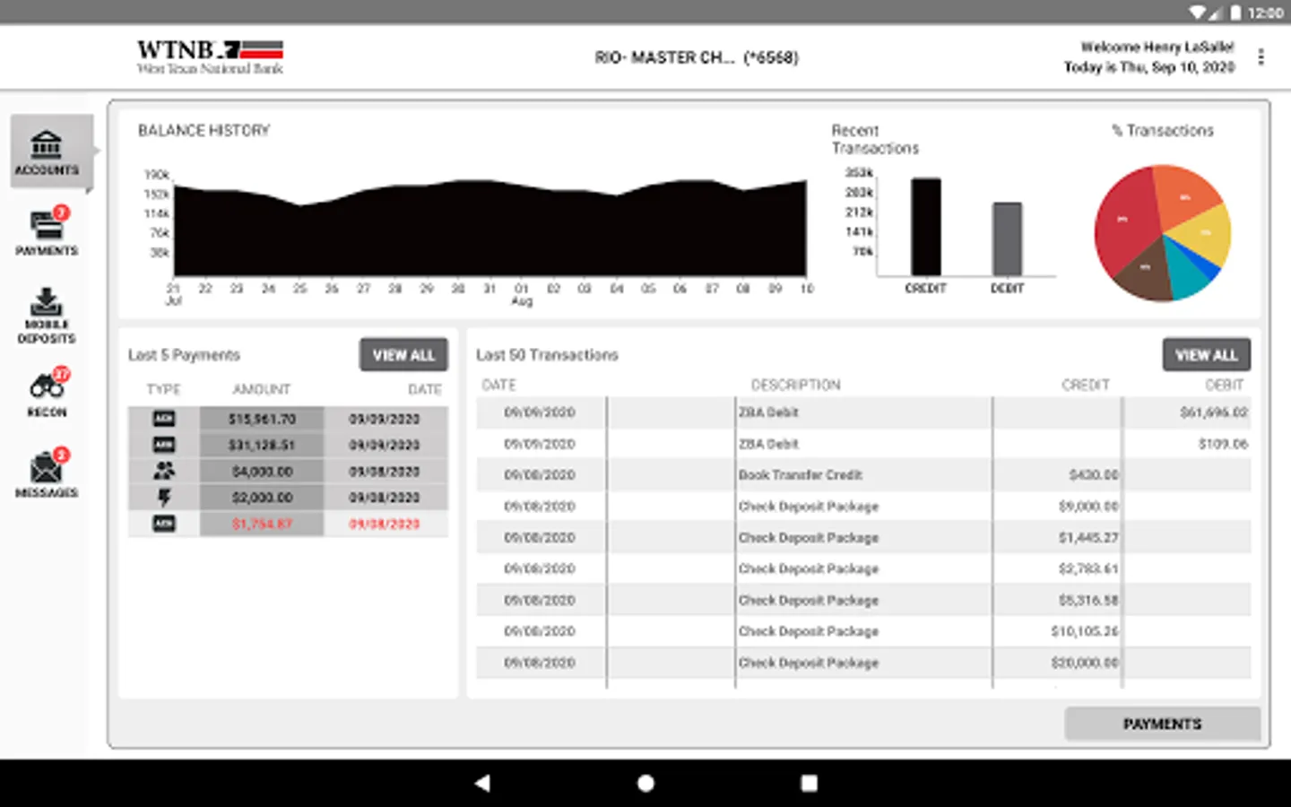 WTNB Business Banking App for Treasury Cash Management Services including ACH, Wires, Positive Pay and Online Banking and Online Bill Pay